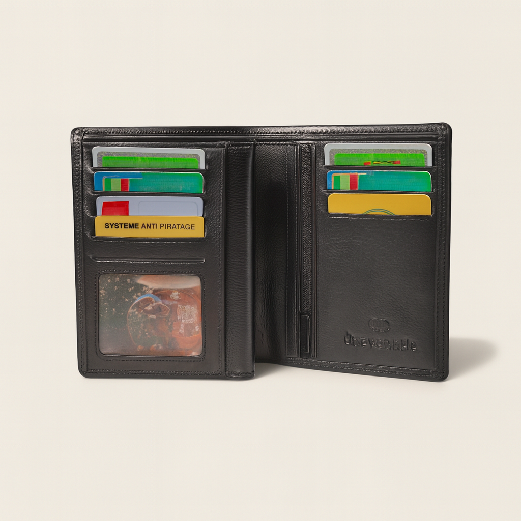 Portefeuille en Cuir Véritable – Noir– Compact & Sécurisé