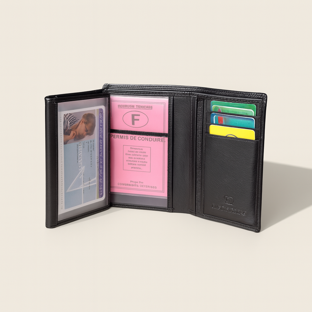 - Compartiments adaptés aux cartes d’identité (ancien et nouveau format)